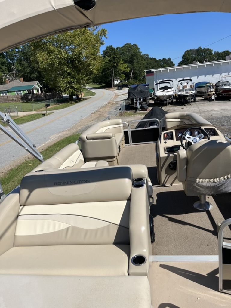 The 2012 Bennington 24 SSL is a 24-foot pontoon boat designed for cruising, entertaining, and watersports, featuring a spacious layout with plush seating and a rear-facing lounger, a full vinyl or Snap-In carpet floor, an oversized Bimini top for shade, and a reliable outboard engine, typically around 115-150 HP. Key features include a portable cup holder, a 10-foot Bimini top, ample storage compartments, and a Sony stereo system, with optional upgrades such as the ESP Performance Package for enhanced performance.