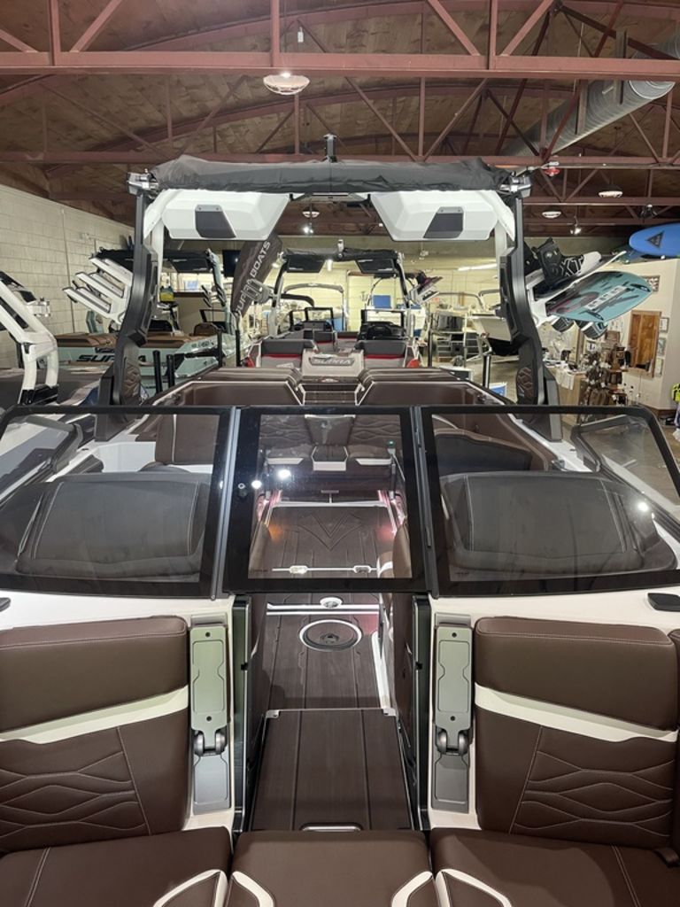Designed with meticulous attention to detail, this tower represents superior engineering, offering enhanced functionality and style. It comes equipped standard with new ClampForceTM board racks, providing convenient and secure storage for your wakeboards. Bimini storage has been improved for easy access and a cleaner look.